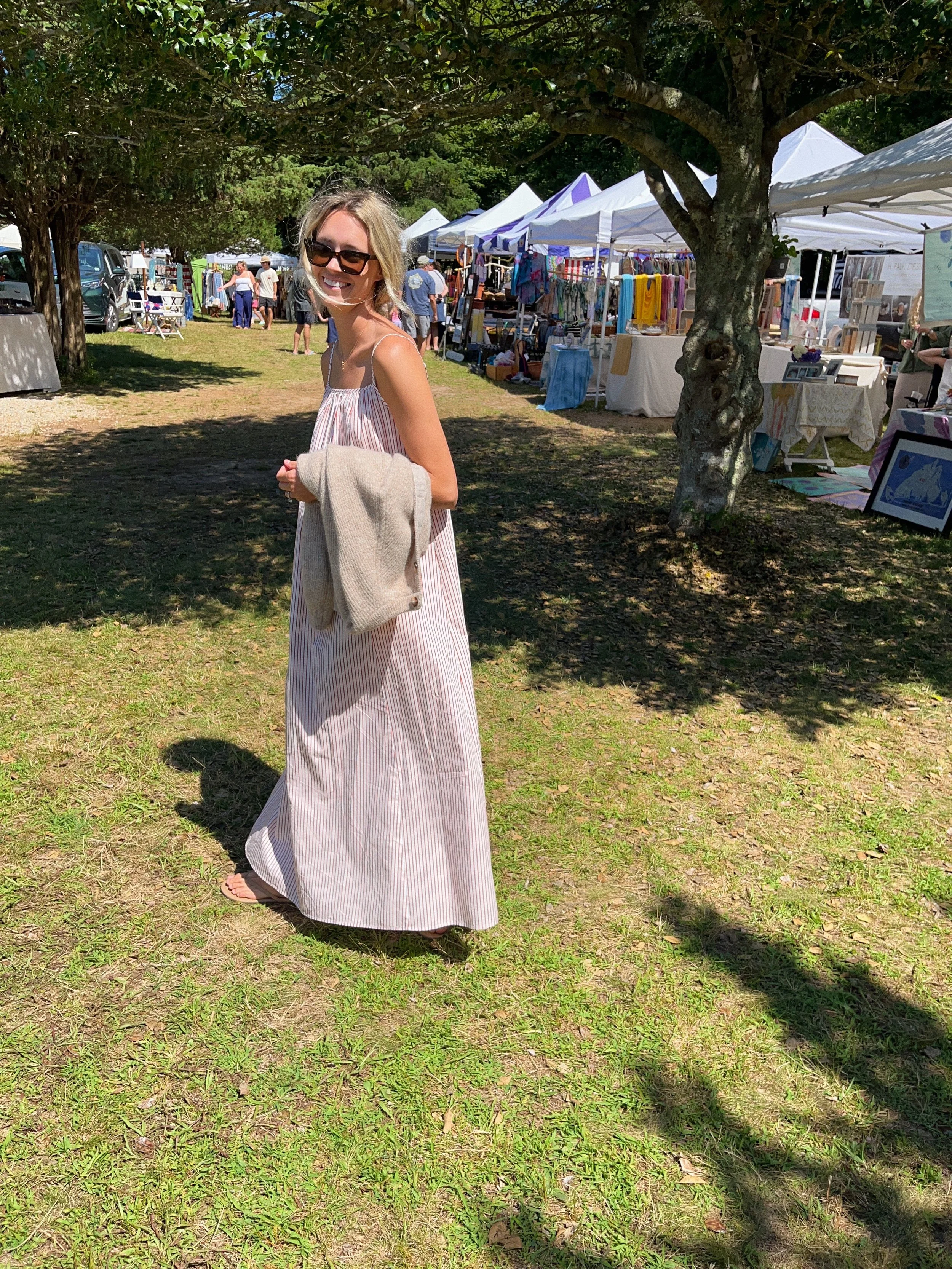 The Market Maxi — summer in the city has been hot! This style is so easy on a 90 degree day, but still feels elevated. I recently styled it with a sweater over top to make it look like a skirt and loved the look. I wear xs