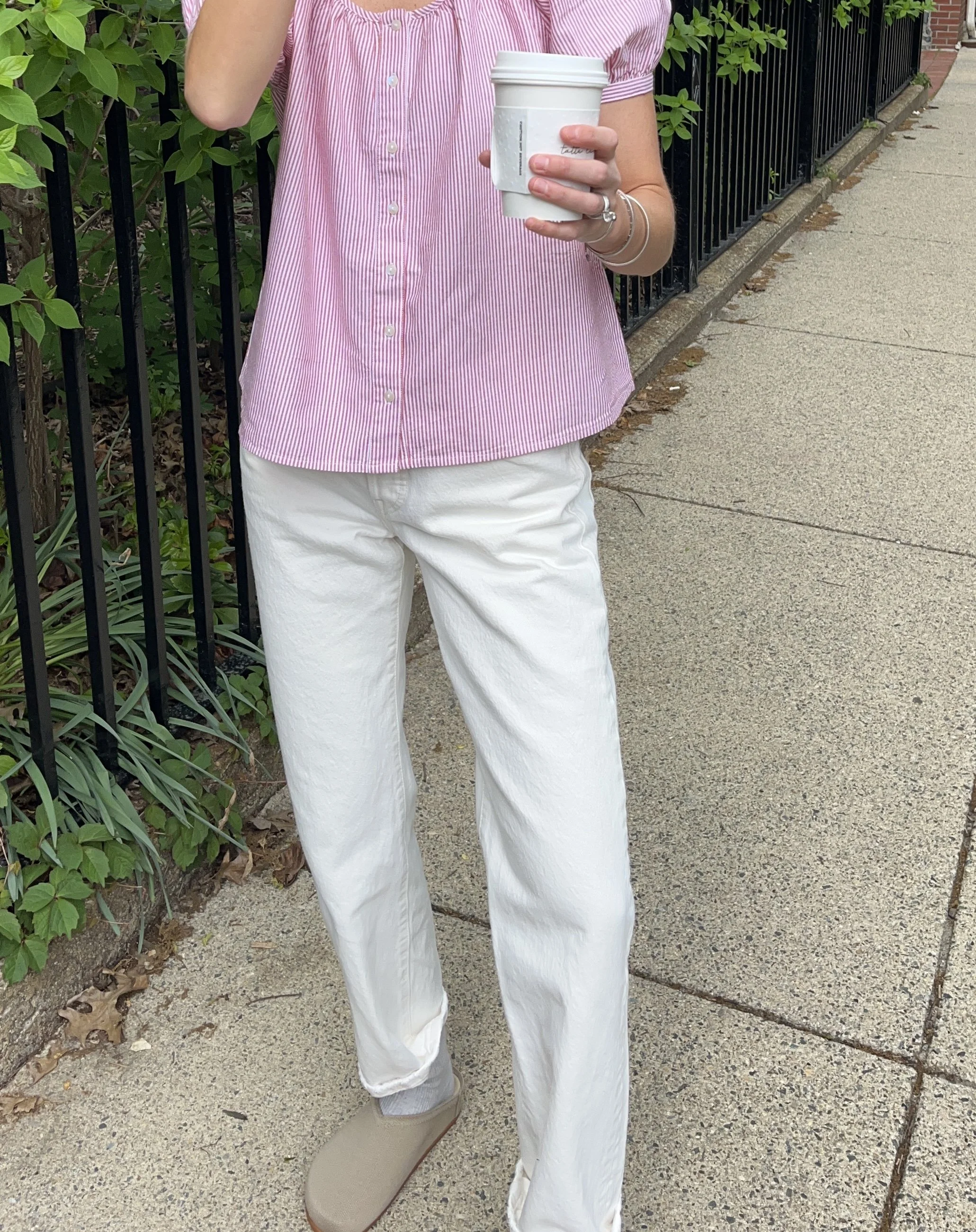 25% off sitewide. A perfect time to grab my favorite button down The Boxy Oxford. Also wear their Box-Cut Tee on repeat. And these Joggers. All size small